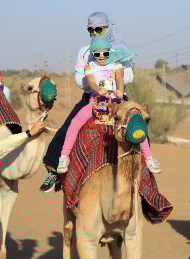 We entered the desert the traditional way, riding camels across the sand, which immediately made the experience feel special and authentic. For the children, this was a true once-in-a-lifetime moment and surprisingly calm and enjoyable.